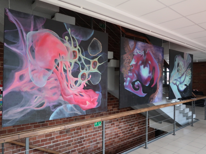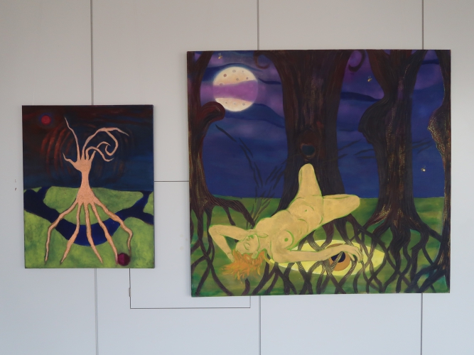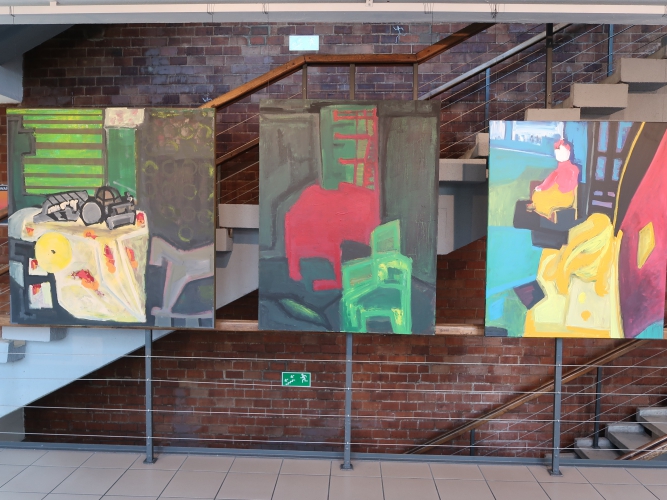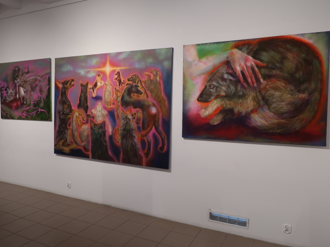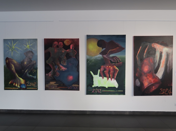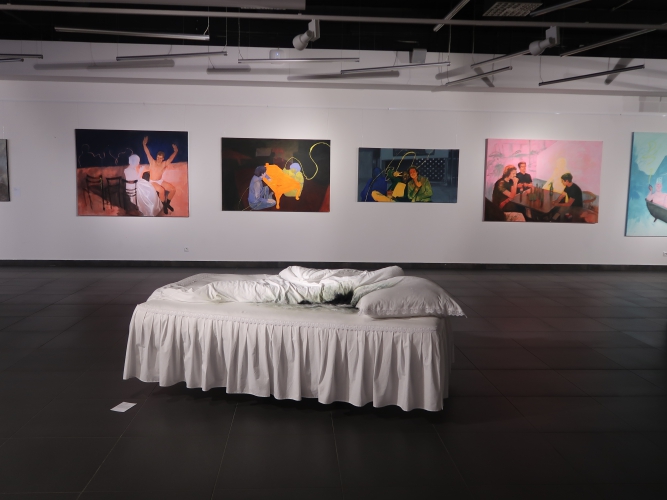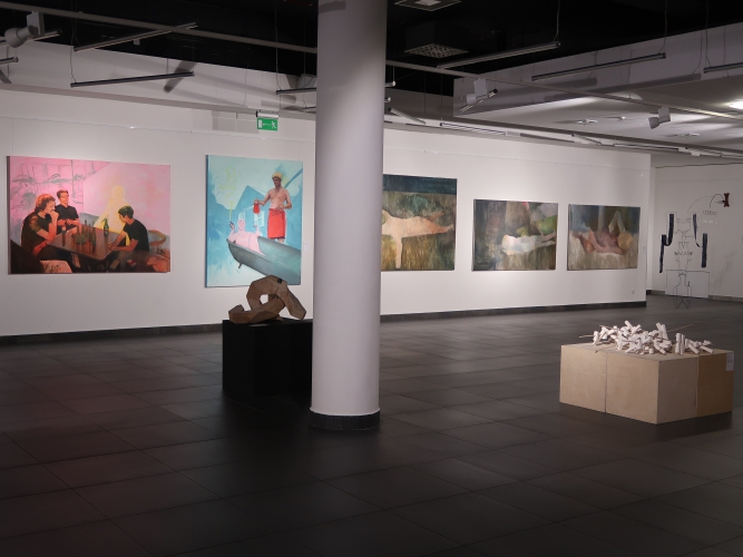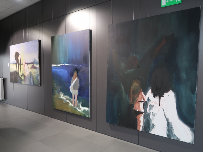 Interesujący jest malarski cykl Oliwii Chmielewskiej „Fragmenty minionych lat”, w którym autorsko przetwarza ona kadry z wakacyjnych fotografii, sprawiając, że z banalnych ujęć powstają tajemnicze obrazy. Nieoczywistą formą intrygują trudne do odczytania płótna Kaliny Płużek, krytykujące współczesne mechanizmy społeczno-ekonomiczno-technologiczne, gdzie człowiek jest tylko trybem w maszynie. Ładnie operuje światłem malarka Zuzanna Ciunowicz w serii skulonych kobiecych aktów. Julia Grygorczyk w pięcioelementowym malarskim cyklu wykorzystuje dwuznaczność określenia „Spotkania” (jak zatytułowała serię): każdy obraz przedstawia spotkanie ludzi, a jednocześnie jest efektem badania relacji między formami, kolorami i przestrzenią. Część codzienności pokazana jest realistycznie, inna – odrealniona, jedne kolory są naturalne, inne – zupełnie nie. Dochodzi zatem jeszcze trzeci sposób rozumienia słowa „spotkania” – to zderzenie rzeczywistości obiektywnej z rzeczywistością sztuki…