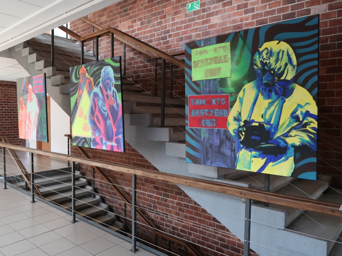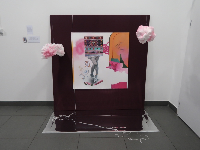 Co dzieje się z psychiką człowieka doświadczonego przez wojnę, kiedy od koszmaru musi przejść do normalnego życia, na własnym przykładzie próbuje pokazać Maryna Slobova. „By chronić nas przed psychicznym i fizycznym wyniszczeniem, umysł buduje świat pełen jasnych, czystych barw i różowych chmur, maksymalizując to, co pozytywne” – tłumaczy. Dlatego jej instalacja z wiszącymi różowymi chmurkami, które można w dodatku podświetlać na różne kolory, przypomina dziecięcy pokój. Wygląda na to, że aby odzyskać siebie, trzeba się obejrzeć za siebie i zaczerpnąć z czystego, dziecięcego umysłu.