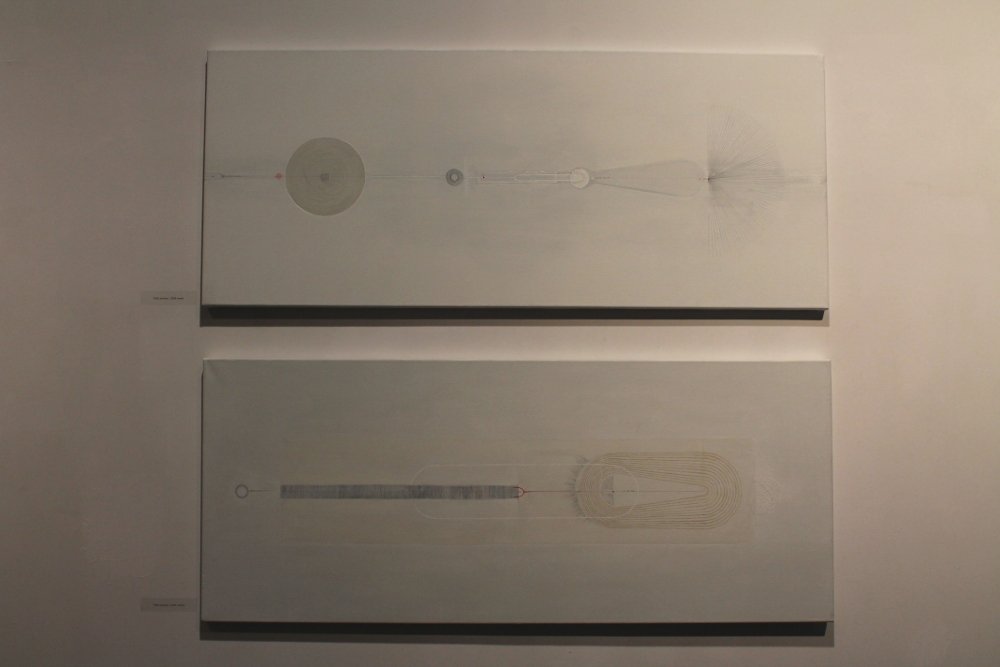awersu).Ten dualizm składający się na jedną wartość podkreśla jeszcze oświetlenie: w jasnym świetle widzimy ciemny rysunek linii na białym tle, a gdy światło gaśnie, wyłaniają się, świecąc fluorescencyjnie, ukryte dotąd znaki. To z kolei subiektywne odczucia autorki związane z konkretną wartością. Co ważne – te rysunki z czasem znikają. – Mój stosunek do danej wartości może się przecież zmienić – mówi Monika Czarska.