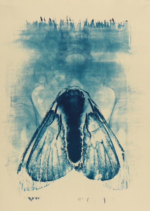 I tak oto na cyjanotypiach Marka Noniewicza ćma czy pióro