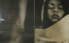 wyglądają jak mroczne fotografie. Na jednej ludzka noga, na