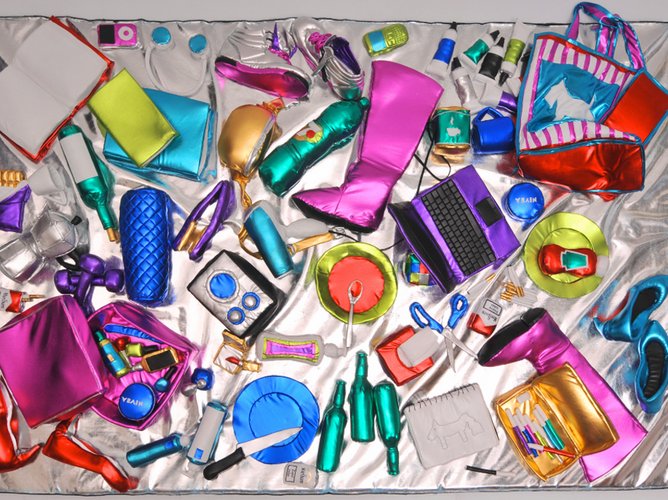 przedmiotów z miękkiego, błyszczącego metalicznie materiału w