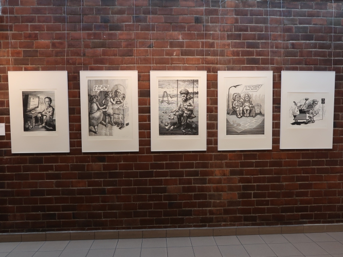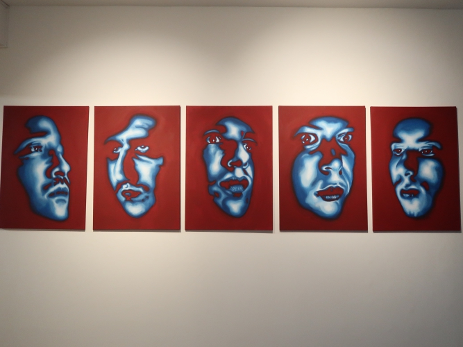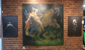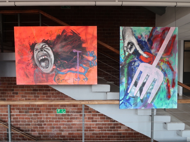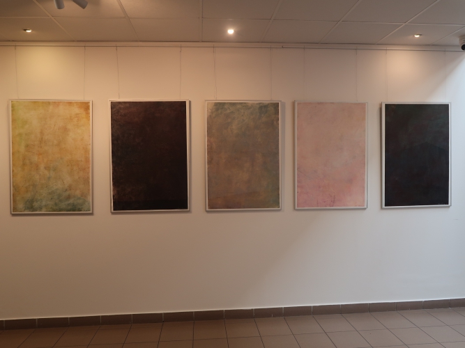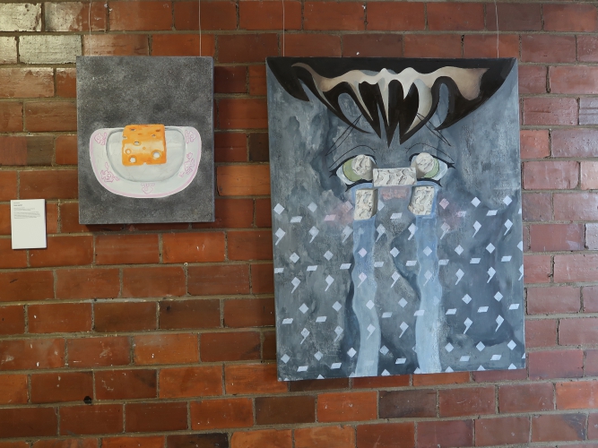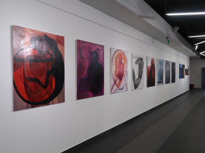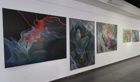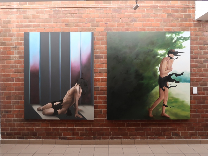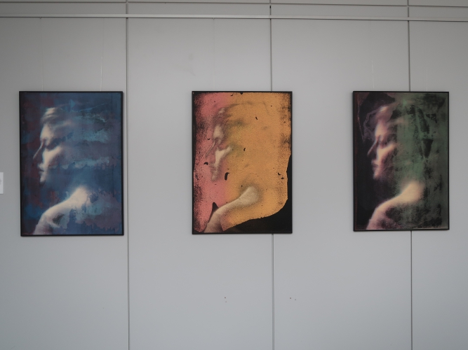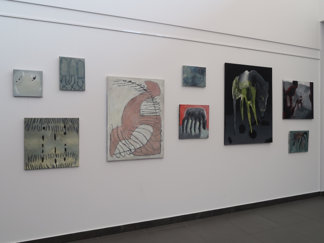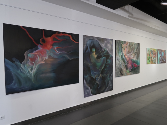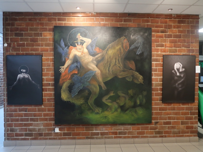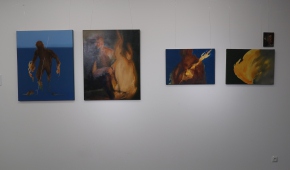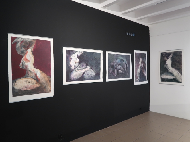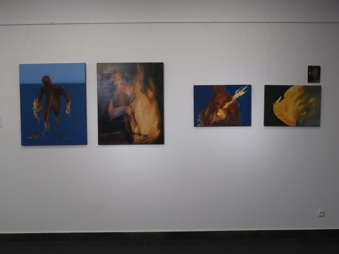 Spośród prac malarskich moim zdaniem na uwagę zasługują cztery cykle. Po pierwsze – „Stany niewypowiedziane” Leny Pawlik, ni to figuratywne, ni to abstrakcyjne, mówiące o odczuciach balansujących między percepcją a intuicją. Są na nich ludzkie postaci, jest też coś, co przypomina jaszczura, a wszystko malowane dużymi plamami, szkicowo, bez żadnych szczegółów.