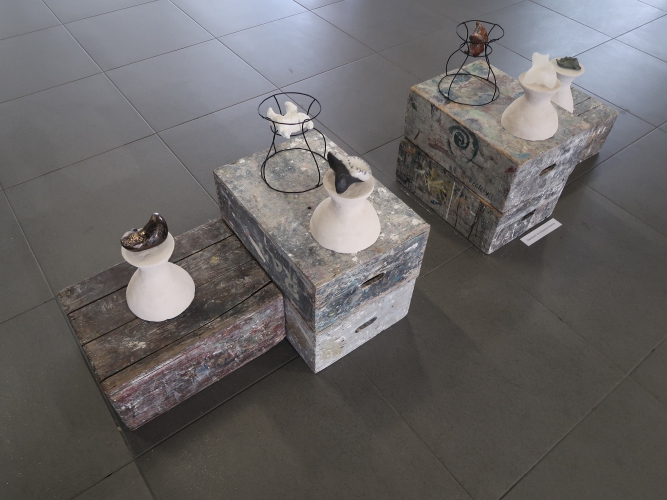 Grafiki udające obrazy to pewna nowość, eksperyment godny uwagi zwłaszcza w przypadku abstrakcyjnych prac Joanny Dereczki z cyklu „Powietrze i przestrzeń”, które z daleka do złudzenia przypominają strukturalne malarstwo. Spośród rzeźb szczególnie interesujące wydały mi się wyglądające na żeliwne obiekty Anny Włostek, prace Heleny Miszczak z surowego drewna oraz, jak w poprzednich edycjach konkursu, malutkie, pasujące do dłoni ceramiczne obiekty Ryszarda Henryka Chojnackiego, których można dotykać. Tym razem młody artysta poza samodzielnymi obiektami pokazał rzeźby umieszczone w pewnych kontekstach – na kontrastujących białych płachtach z narysowanymi na nich geometrycznymi kształtami.