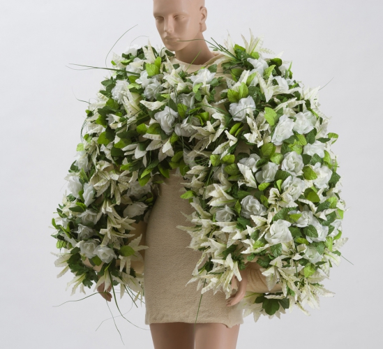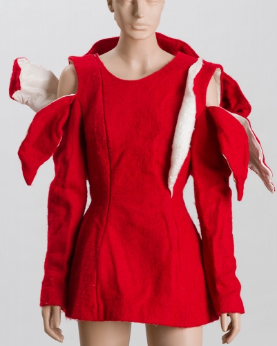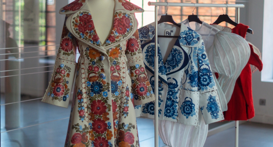 Co łączy zakupione kolekcje? Z pewnością fascynacja ich autorów polskim folklorem i sztuką ludową. Realizacje projektów z okresu studiów na Central Saint Martins w Londynie ilustrują i dokumentują początki drogi twórczej i londyńskiej kariery Arkadiusa. To pierwsze projekty zauważone przez krytyków i znawczynie mody. Nawiązują do kultury ludowej, bazując jednocześnie na osobistych wspomnieniach projektanta z dzieciństwa spędzonego na Lubelszczyźnie. Tendencja do kontrastowych zestawień, tego co swojskie z wyrafinowaną sztuką rozwinęła się także w kolekcji „Paulina”, w której Arkadius pokrywał ubrania ręcznie malowanymi kwiatami. Podobne zabiegi stosuje Duet RAD – kolekcja „Wiesia” to współczesna wariacja na temat polskiego folkloru, inspirowana tradycją i wspomnieniami z dzieciństwa. Jasna „ekoskóra” i rzeźbiarskie formy upodabniają projekty do wzornictwa stosowanego na włocławskim fajansie. Granica między tkaniną a ceramiką zostaje umownie zatarta.