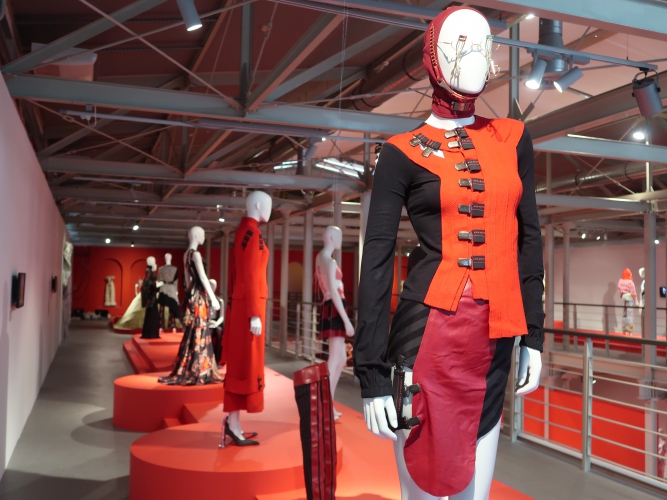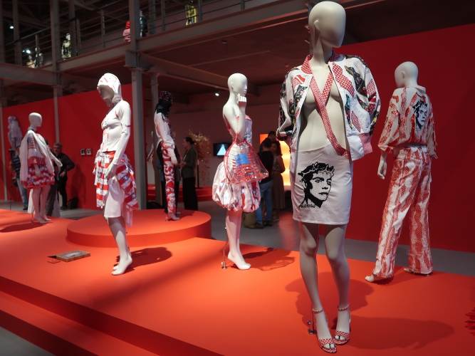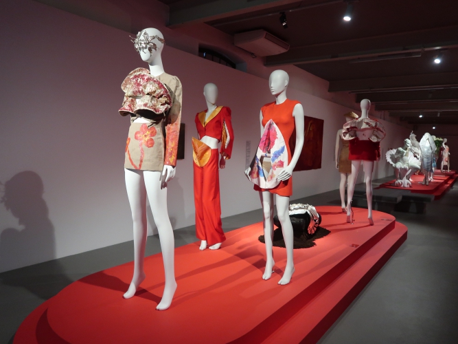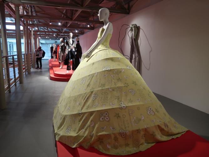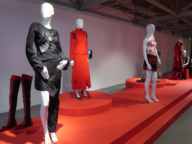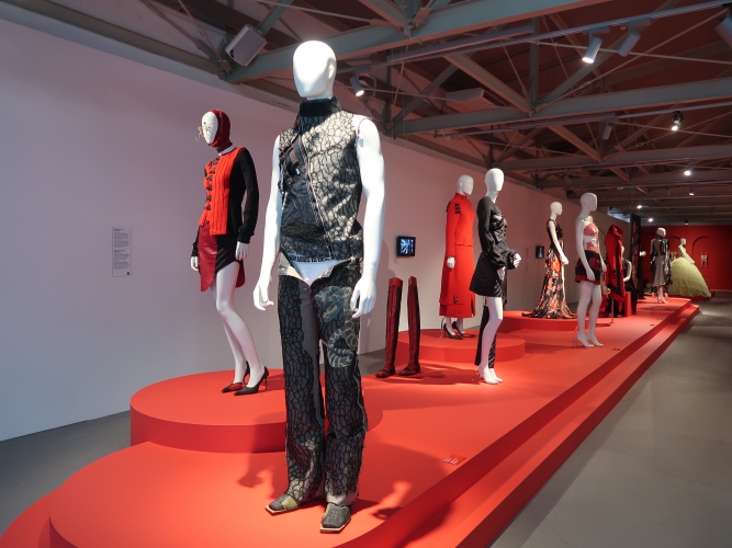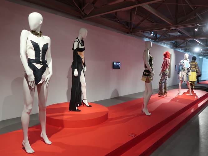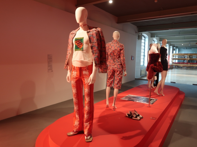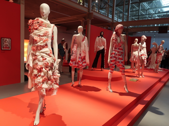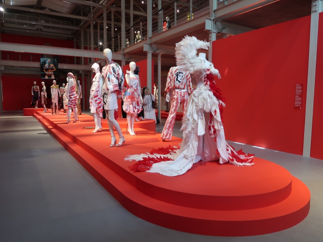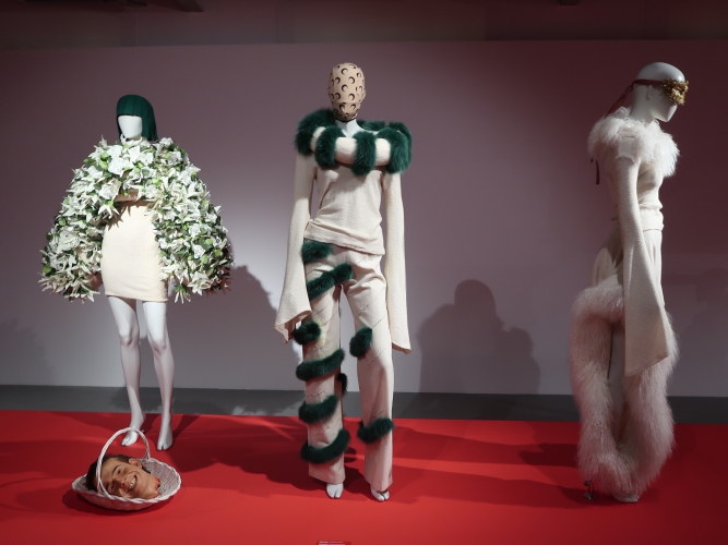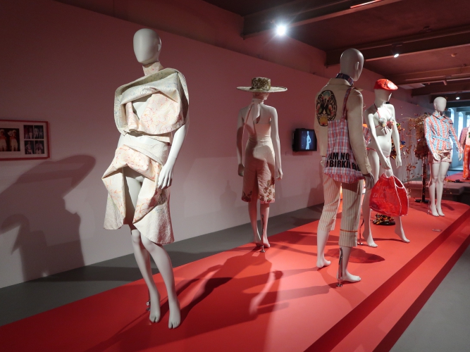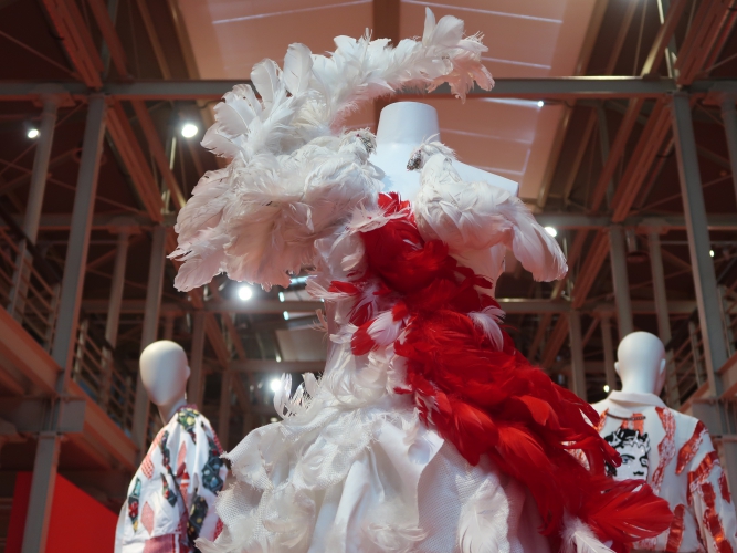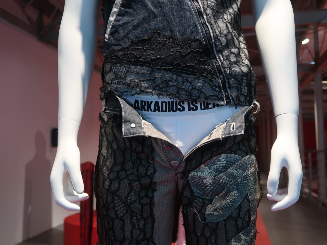 Ubiory Arkadiusa prezentowane są w CMWŁ na czerwonych podestach przypominających modowe wybiegi. To zapewne nawiązanie do wielkich pokazów na London Fashion Week czy New York Fashion Week, w których uczestniczył projektant, ale i metafora jego drogi i wyniesienia na szczyt.
