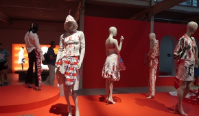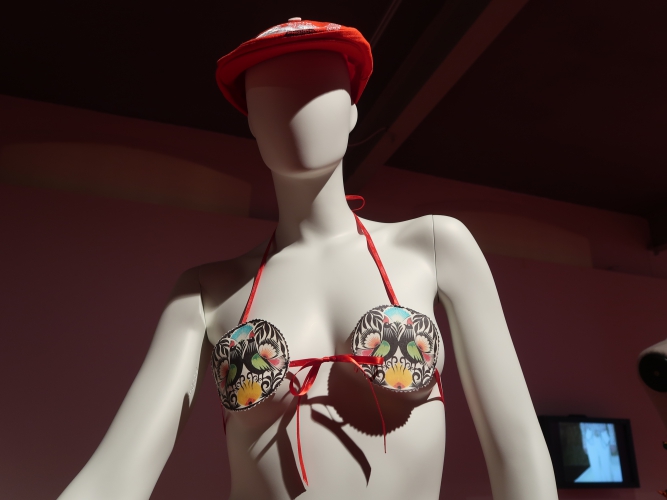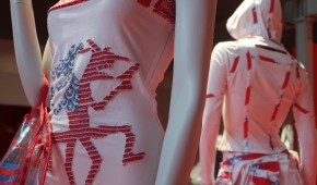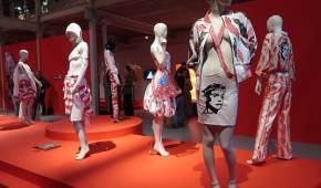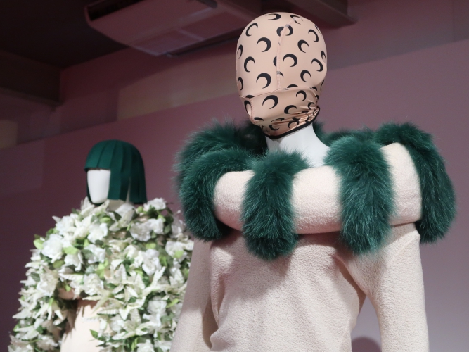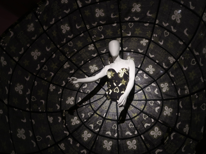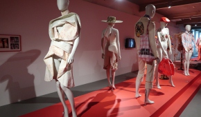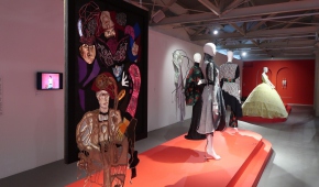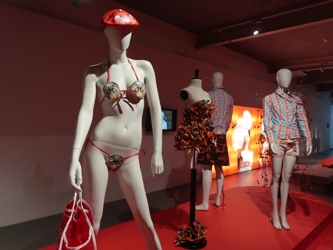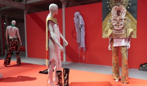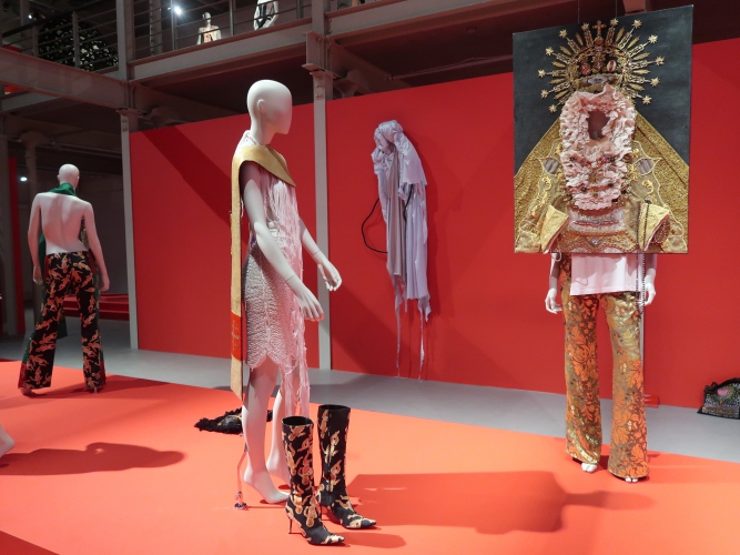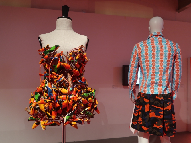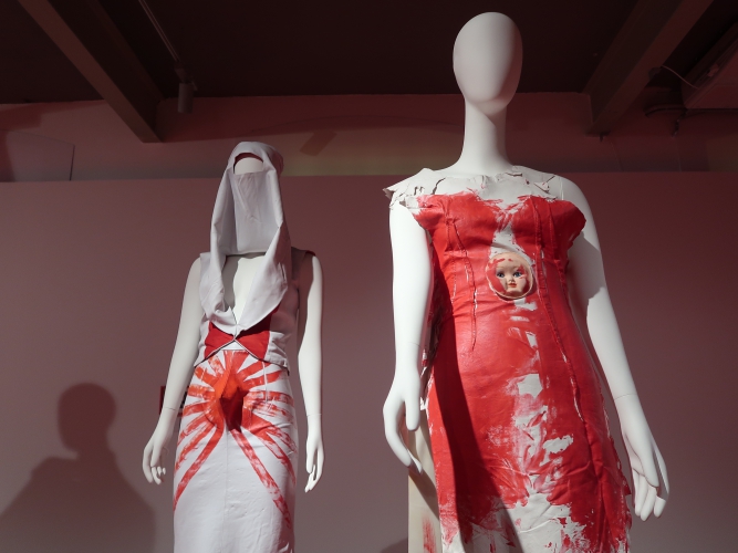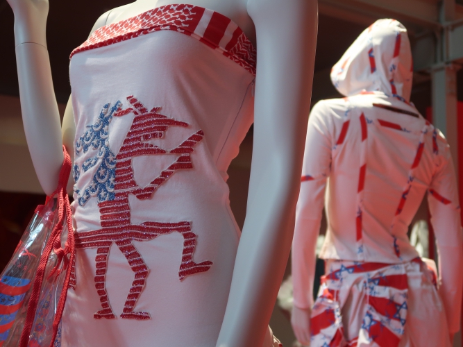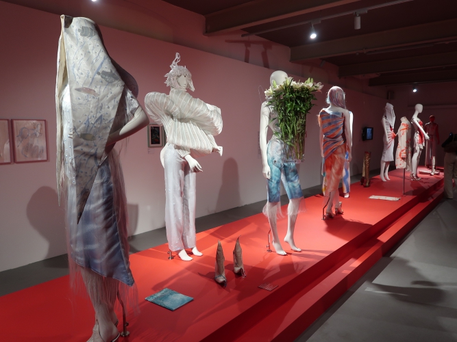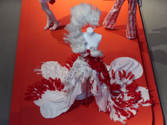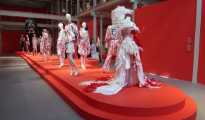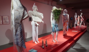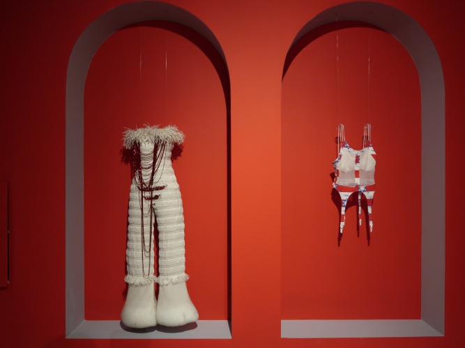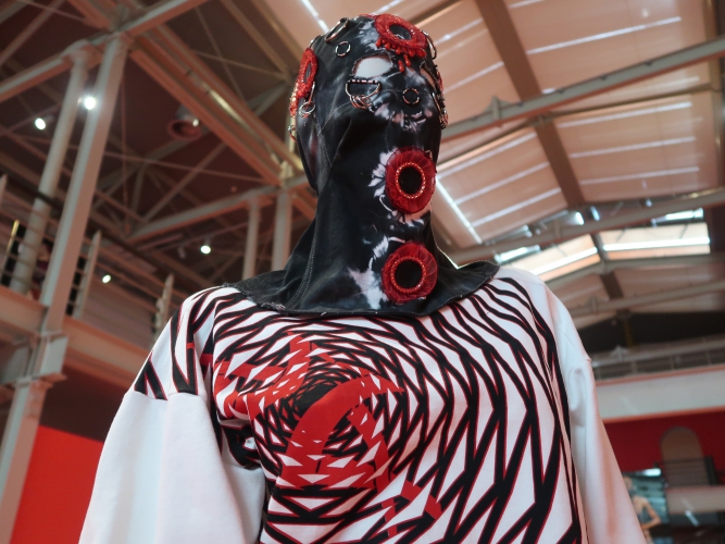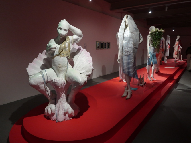 Ubiory Arkadiusa prezentowane są w CMWŁ na czerwonych podestach przypominających modowe wybiegi. To zapewne nawiązanie do wielkich pokazów na London Fashion Week czy New York Fashion Week, w których uczestniczył projektant, ale i metafora jego drogi i wyniesienia na szczyt.
