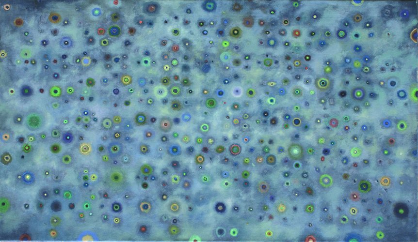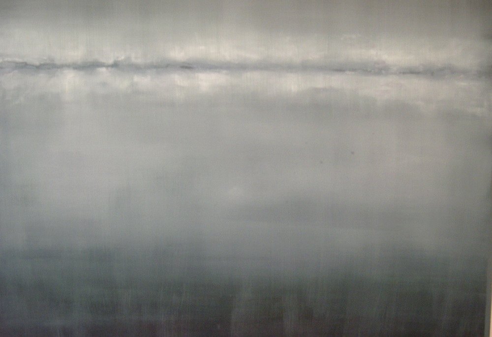 np.w szaroniebieskim płótnie z nieco wzburzoną, rozbieloną poziomą