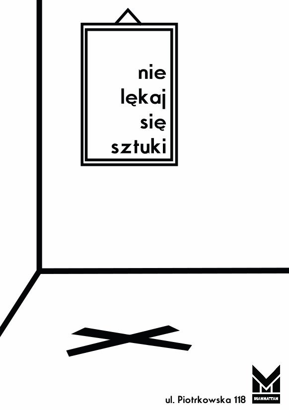 kartce.„Nie lękaj się sztuki ! - wejdź do galerii” to akcja społeczna Galerii Manhattan, która ma na celu oswojenie łodzian ze sztuką i miejscem jej prezentacji – galerią. Pragniemy zatrzymać choć na chwilę przechodniów ulicy Piotrkowskiej i zaprosić ich do środka galerii, w której prezentowana jest sztuka najnowsza, niejednokrotnie trudna i kontrowersyjna. Ta sztuka oczekuje na odbiorców, bo dopiero wtedy zacznie funkcjonować nasycając się znaczeniami.