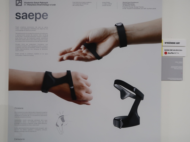 Łukasz Gałach za pracę „Wzorniczy projekt urządzenia wspomagającego rehabilitację dłoni osób po udarze” zrealizowaną w Pracowni Rozwoju Nowego Produktu pod kierunkiem dr. hab. Krzysztofa Chróścielewskiego, prof. uczelni