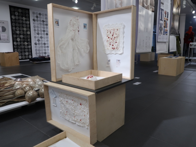 Milena Łojek za pracę „Fobia krwi” zrealizowaną w Pracowni Tkaniny Eksperymentalnej pod kierunkiem dr hab. Lidii Choczaj, prof. uczelni i mgr Pauliny Sadrak