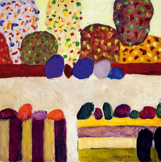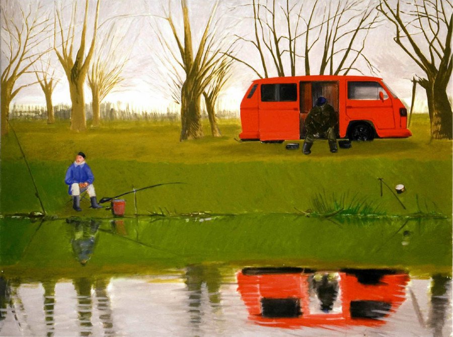 rybka” z 2007 r. to pejzaż z wykreowaną, nasyconą kolorystyką.