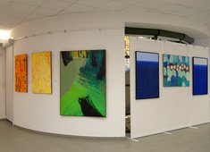 kompozycje abstrakcyjne. Prace charakteryzuje wyszukana kolorystyka