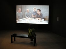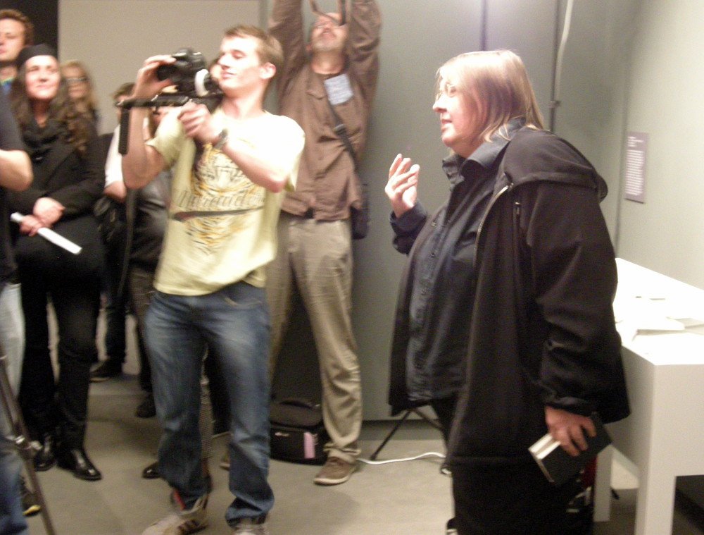 Co do performance’ów, które dzięki zapisom wideo możemy oglądać w muzeum – ryzyko, jakie podejmuje człowiek, zostając artystą, może symbolizować akcja Marka Janiaka (tylko dla widzów o mocnych nerwach): twórca stoi przy ścianie, przed nim napięty pałąk z doczepionym na sztorc nożem, płomień świeczki przepala żyłkę napinającą pałąk, a ten wystrzeliwuje, uderzając ostrzem noża tam, gdzie Janiak ma twarz – artysta w ostatniej chwili robi unik… Bardzo ciekawy aspekt funkcjonowania Galerii Wschodniej pokazują dokumentacje wystąpień, w które w jakiś sposób zaangażowana jest lokalna społeczność, choćby jako obserwatorzy – zabrakło mi cyklu krótkich wywiadów z mieszkańcami okolicy, którzy mówiliby, czym jest dla nich galeria, jak ją postrzegają: jako element ubarwiający ich szare życie, czy raczej jako dom nieszkodliwych wariatów. To mogłoby być interesujące spojrzenie…