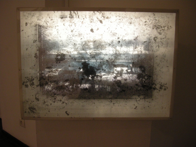 Także Maciej Kędzielawski wciąga nas w swoją przestrzeń – wciąga niemal dosłownie, bo dzięki eksperymentowi z umieszczaniem kolejnych warstw fotografii w lightboksach w formie pudełek pojawia się fascynujący efekt trójwymiarowości. Kolejne warstwy budują głębię. Na zdjęciach umieszczonych w tylnej części boksów jest miasto – i w wydaniu reprezentacyjnym, i raczej wstydliwym. Na warstwach przezroczystej folii przed zdjęciami – jego elementy: hydrant, suszące się na sznurku spodnie, a na przedzie boksów, także na folii, czarne plamki – może to zaburzenia, jakie na pamięć nakłada czas.