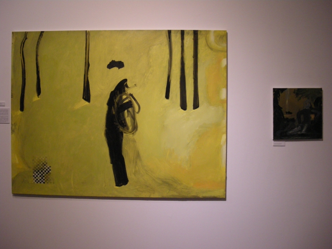Malarskie obrazy Piotra Kotlickiego wyróżniają się wśród innych prezentowanych prac. Dla jego płócien charakterystyczna jest surowa estetyka i klimat marzenia sennego, ale raczej tego koszmarnego. Jak artysta tłumaczy w tekście towarzyszącym wystawie: „Masa rzeczy w malowaniu jest uświadomiona, jednak jeśli rozum się choć na chwilę zawiesi, instynkt wciska się natychmiast. Oblepia ze wszystkich stron pomysł, przybiera każdy kształt, choćby szalonej poczwary. Wykluczenie jej z obrazu za podpowiedzią rozumu jest jak odarcie obrazu z największej siły”. Oglądamy zatem efekt ścierania się dwóch uzupełniających się sił motywujących twórczość tego autora.