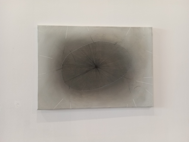 – Słowa wypowiadane szeptem skupiają uwagę i dla mnie fascynujące jest, jak dużą siłę przekazu mogą mieć przy tak małym natężeniu głosu – mówi Monika Czarska.Fascynacja szeptem była dla niej impulsem do próby zwizualizowania go. Na obrazach połączone ze sobą proste linie, cienkie niczym włosy, biegną ku centrum, gdzie skupiają się i łączą. – Tworzeniu obrazów z cyklu „Szept” towarzyszyło słuchanie muzyki, oglądanie filmów i czytanie książek, z których wybrałam pewne słowa – wpisałam je w krótkich sekwencjach w moje prace, w wersji angielskiej, ponieważ to język uniwersalny. Te sekwencje w pewien sposób dopełniają moją analizę aspektów szeptu – opowiada artystka.