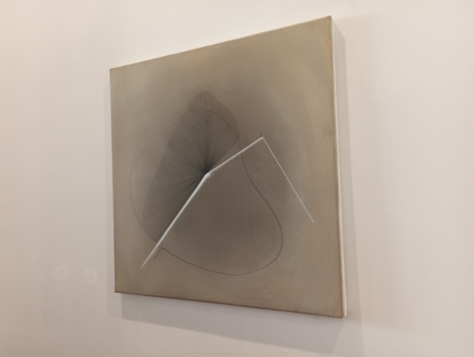 Monika Czarska chciała także pokazać, jak, według niej, powstaje szept i jak jest słyszany. Praca zatytułowana „Pure” jest jedynym na wystawie przestrzennym dziełem wykonanym na desce. Okrągłym z symetryczną wypukłością. – Słuchacz-odbiorca skupia uwagę na pewnym dźwięku, a pozostałe są dla niego mniej słyszalne. Dlatego ten obraz jest wypukły. Centralny, najwyższy jego punkt to słyszany szept, wszystko, co poniżej niego, to dźwięki, na które odbiorca nie zwraca uwagi.