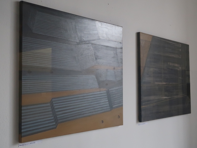 Spośród owych prac najbardziej chciałabym zapoznać się z obrazami: „Miejsce zapomnienia” (2020), „Zamarłe osiedle” (2020), „Pusta widownia” (2021) – które są przedstawiające, choć schematycznie, w uproszczony sposób – oraz z abstrakcyjnymi „Grodzenie IV” i „Grodzenie VI” (oba 2018), gdzie z podzielonego pionowymi liniami ciemnego tła wyłania się również podzielony pionowo jaśniejszy okrąg, jak ślad światła z reflektora na teatralnej kotarze. Na reprodukcjach te dzieła zachwycają.