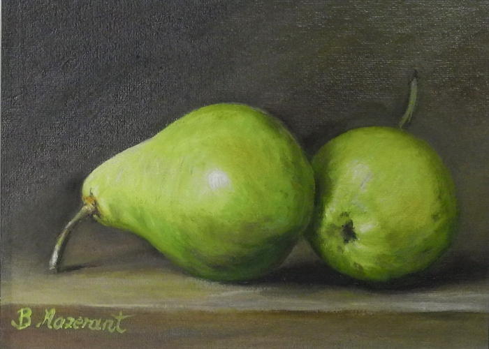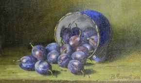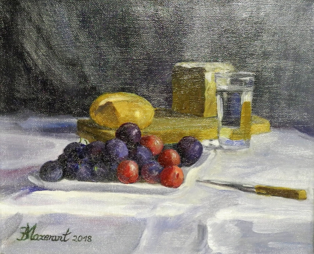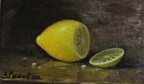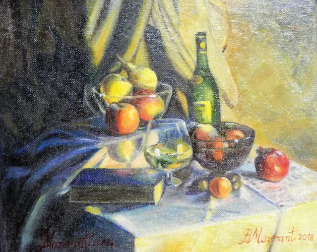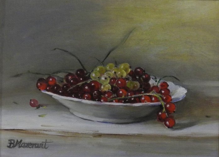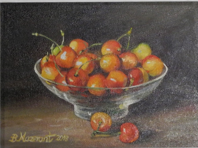 Ich autorka, pani Barbara Mazerant zaprezentowała też pejzaże i martwe natury, lecz jak sama mówi, owoce udały się jej najlepiej chyba dlatego, że je lubi. Jednak gdyby ktoś chciał kupić któryś z tych obrazów, to nie ma szans, bo wszystkie już są zamówione…Jak przyznaje pani Barbara Mazerant, od zawsze lubiła rysować i malować. Planowała pójść na Akademię Sztuk Pięknych, lecz bliscy odradzali jej to mówiąc, że po takich studiach nie znajdzie pracy. Wybrała więc Wydział Włókienniczy na Politechnice Łódzkiej, gdzie specjalizowała się w chemicznej obróbce włókna. Później przyszła rodzina i praca zawodowa, więc brakowało wolnego czasu na rozwijanie swoich artystycznych pasji.