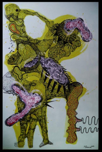 Łódzki artysta Piotr Pasiewicz tworzy abstrakcyjne prace w technice mieszanej, zajmuje się też performensem i artystycznym eksplorowaniem łódzkich przestrzeni pofabrycznych. Prowadzi autorską galerię sztuki (aktualnie zamkniętą z powodu obostrzeń), gdzie na wystawach zestawia swoje prace z dziełami innych artystów. Prezentujemy jego prace.