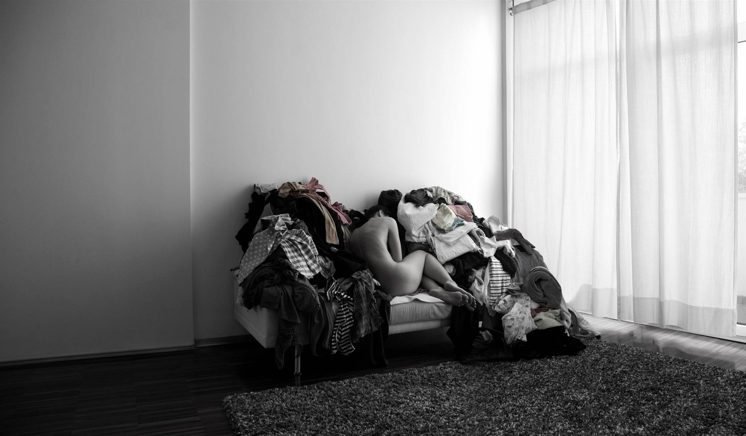 ubrania. A w tym bajzlu nagie kobiety, przywalone ubraniami.