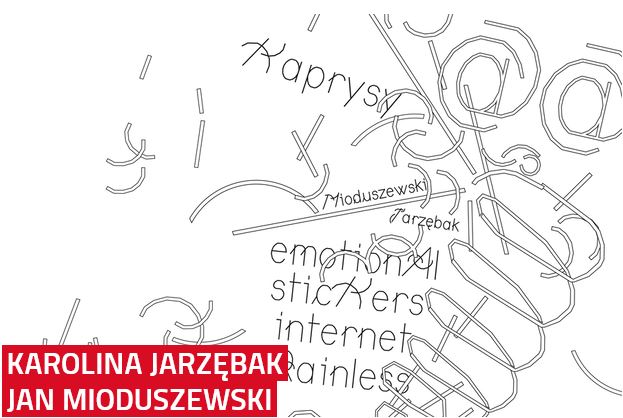 Ekspozycja składa się z dwóch rozdziałów: „emotional stickers internet brainless” Karoliny Jarzębak oraz premierowego pokazu nowych obrazów Jana Mioduszewskiego „Kaprysy”. Zamysłem kuratorskim konfrontacji dzieł tej dwójki artystów jest przyjrzenie się wątkom płynności w ich obrazach. Efektem tej narracji będzie wybuchowa mieszanka tropów cyber- i popkulturowych oraz retromodernistycznych imaginacyjnych montaży. Międzypokoleniowe zderzenie spojrzeń wnosi do wystawy dodatkową energię i świeżość.