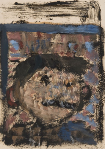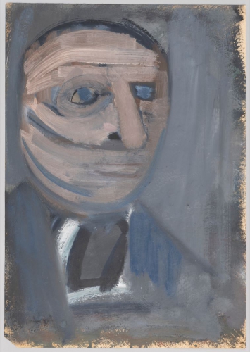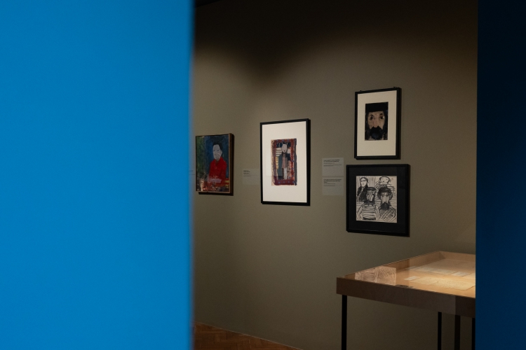 Eksponowane na wystawie głowy, wyabstrahowane z całego dorobku artysty, jawią się jako cykl przeobrażeń i deformacji, których musieli dokonywać na sobie Żydzi, by uniknąć identyfikacji. Z tej perspektywy padające na wystawie stwierdzenie, że twarze ulegają „emancypacji z cech indywidualnych” nabiera wagi – anonimowość przybliża do wyzwolenia, jawność cech osobniczych stanowi zagrożenie. W jednej z sal ekspozycji prace zostały skumulowane w jedno skupisko obrazów na ciemnobrązowej ścianie. Ten zabieg aranżacyjny zatrzymał mnie na chwilę. Widok przede mną przypominał zbiór rodzinnych fotografii wiszący w niejednym domu na ścianie w salonie. Przez moment poczułam się nieswojo. Dostrzeżony przeze mnie dysonans prowokował do zadawania pytań: Kim są dla siebie ci ludzie? Dlaczego są przedstawieni razem? Co ich łączy? I już wiem. To obraz wspólnoty, której spoiwem jest anonimowość i strach. Mimo malarskiej ekspresji artysty – zamaszyście prowadzonej linii i nieograniczonej plamy barwnej – twarze na obrazach zdają się trwać w bezruchu, swoistym zamrożeniu. Oczy pod postacią pustych okręgów lub czarnych kropek sprawiają wrażenie przerażonych i czujnych. Są wycofane i puste, nie dają po sobie nic poznać. Oblicza pozbawione mimiki zastygły w oczekiwaniu na „werdykt” oprawcy. „Jechaliśmy nocą w nieoświetlonym wagonie. Gdzieś w okolicy Kielc nastąpiła kontrola dokumentów. Kenkarta Artura była oczywiście na fikcyjne nazwisko. Po wyjściu z przedziału funkcjonariuszy niemieckiej policji jeden z nich wrócił na korytarz i latarką elektryczną długo oświetlał przez szybę twarz Artura, czyli Stefana Samborskiego. Przez te pół minuty Artek ani drgnął”– wspomina Maria Jarochowska (M. Jarochowska „Artek”, „Życie Literackie” 1974, nr 8).