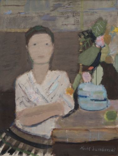 Wybór takich ram czasowych podyktowany jest ewolucją stylistyczną i ikonograficzną, która nastąpiła wówczas w twórczości malarza. Zgromadzone na wystawie dzieła przedstawiają motyw, który zdominował dorobek artysty na długie lata – malowany gwaszem wizerunek wykraczający poza konwencję portretu, ujęty skrótowo, konsekwentnie upodabniany do znaku czy maski.Na pierwszy plan wybija się kolor. To za nim w pierwszej kolejności podąża wzrok widza. Płótna Nachta-Samborskiego wypełniają brązy, szarości i zielenie o różnym natężeniu, odważnie kontrastowane z przytłumionymi, niekiedy rozbielonymi czerwieniami i oranżami. Zdecydowane plamy barwne nie męczą oka nadmiernym nasyceniem, harmonijnie komponują się ze sobą, zachowując przy tym swoją autonomię. Dopiero na ich tle wyłania się kontur postaci, ale nie on dominuje na przedstawieniach – barwne „tło” pozostaje aktywne, zawłaszczając „portretowanych” i naruszając granice ich ciał.