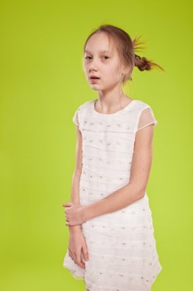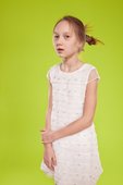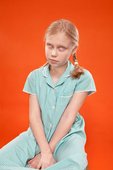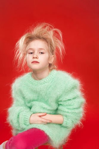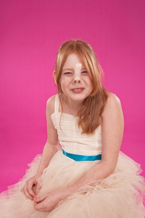 Zdjęcia przypominają raczej niewinne wygłupy dziewczynek przed obiektywem aparatu. Na kolejnych fotografiach widzimy dzieci przybierające rożne pozy. W większości są to dziwne miny, sztucznie przyjmowane grymasy na twarzach. Tak, jak na zdjęciu przedstawiającym dziewczynkę z przyklejonym do nosa plastrem, który zniekształcił jej wyraz twarzy. Na kolejnych fotografiach małe modelki robią zeza, chowają swoje twarze w za duże czapki lub za rozczochrane włosy. Dobrze się bawią.