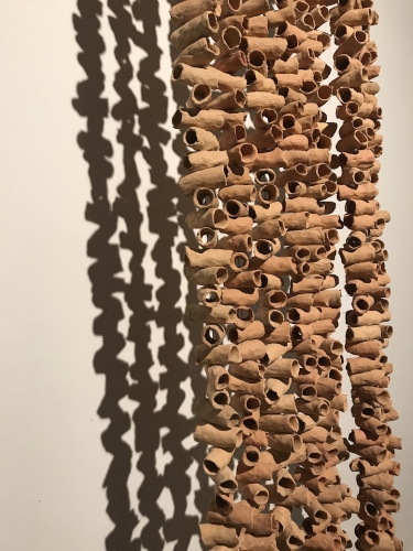 RECENZJA. Sale Centralnego Muzeum Włókiennictwa zajmują prace rzeźbiarza Xawerego Wolskiego. Tytułowe „Sploty” objawiają się w obieranych przez artystę technikach pracy, takich jak wiązanie, tkanie, sznurowanie, dzianie czy szydełkowanie. Wolski łączy je często z nietypowymi dla włókiennictwa materiałami, szydełkując z drutu, wyplatając z źdźbeł trawy, splatając sznury terakotowych korali. Pisze Maria Mażewska.