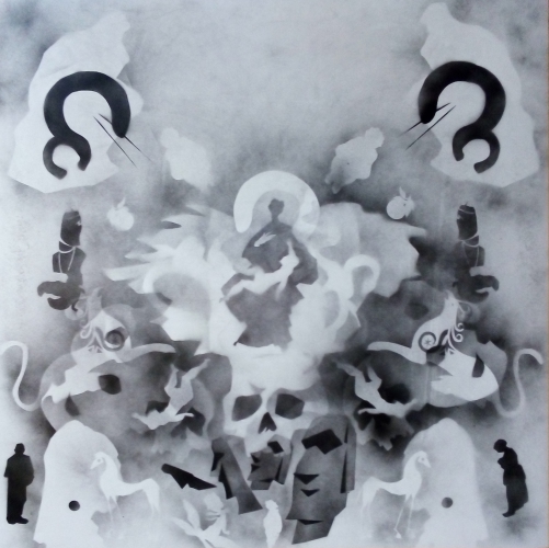 Pierwszy cykl to pięć głównych prac rysunkowych o formacie 100x100 cm, uzupełnionych siedemnastoma mniejszymi pracami. Wykonane techniką kolażu i szablonu, prace wizualizują archetypy takie jak Anima, Cień czy Jaźń, czerpiąc formy z historii sztuki. Kolaże tworzą oniryczne, wielowarstwowe kompozycje, odzwierciedlające złożoność procesówpsychicznych.