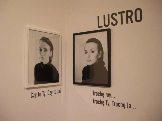 W ciekawy, ale nie wiem, czy zamierzony sposób ten temat oddziałuje na odczytanie sensu duetu: Ewa Bloom Kwiatkowska – Lula Kosmynka, czyli córka artystki, zaproszona przez nią do udziału w wystawie. Lula jest modelką na zdjęciach z „kagańcem”, pokazuje próbkę swojej działalności w postaci marynarki z nadrukami wyrażającymi jej indywidualność i jest autorką zestawienia dwóch fotograficznych portretów: swojej matki i swojego w tym samym wieku. Podobieństwo jest uderzające. Lula Kosmynka powołuje się nie tylko na genetyczne dziedzictwo, ale i na tę samą drogę twórczą (obie panie projektują scenografie i kostiumy). Niechcący powstała wypowiedź o tym, jak silna osobowość matki – wyrazistej artystki – wpływa na córkę, która chce (a może „musi”) podążać jej śladem.