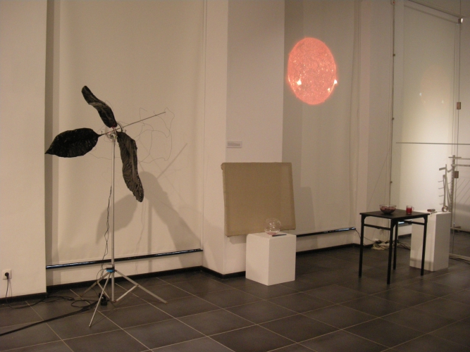 Skromna jest także umieszczona tuż obok (ale już na terenie właściwej galerii) instalacja Roksany Kularskiej-Król i zaproszonej przez nią Justyny Stopnickiej, poświęcona medialnym manipulacjom pogłębiającym społeczne antagonizmy. Rodzinny stół jest dziś miejscem, wokół którego z coraz większym trudem scala się wspólnota – to bowiem również arena konfliktów o podtekście politycznym. Jest puste płótno, którego nie ma kto zapełnić, jest kompot z farby, szklane naczynie ze śladami farby na dnie, miska wypełniona papierową breją, a nad tym wszystkim Słońce wybuchające plazmą. Za dużo tego. Wystarczyłaby chochla ubrudzona wspomnianą papką.