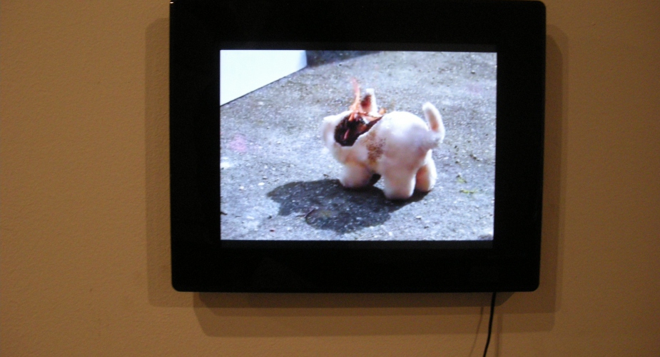 Ewa Kaja pokazuje proste, przejmujące wideo, w którym staje po stronie krzywdzonych –zwierząt hodowlanych. Zabawkowa świnka spaceruje, machając ogonkiem, marszcząc ryjek i kwicząc. Ale zostaje podpalona – i, płonąc, nadal kwiczy i macha nóżkami, tyle że to już nie jest ani zabawne, ani sympatyczne.