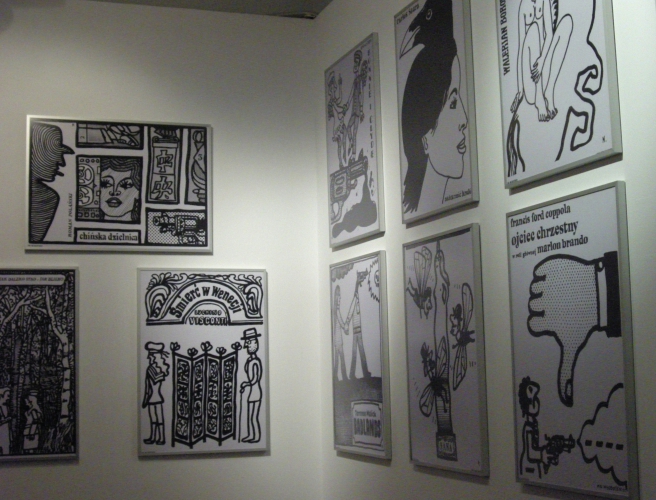 W gwaszowych „obrazkach” malowanych dla przyjemności artysta nie musiał dbać o czytelność pomysłów – na niektórych pojawiają się wprawdzie rysowane charakterystyczną kreską postaci znane z plakatów, ale część z tych prac to abstrakcje, na przykład kompozycje kolorowych plam i czarnych linii.