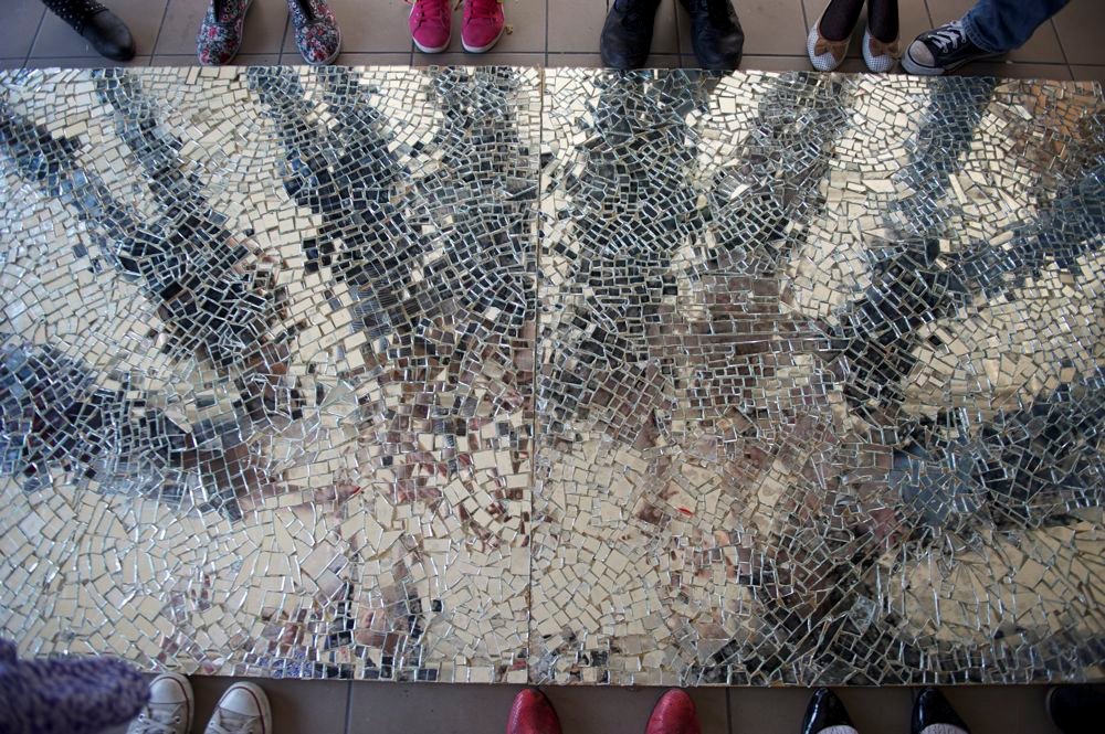złożoną z małych kawałków nieregularnie pociętych luster. Odbijając