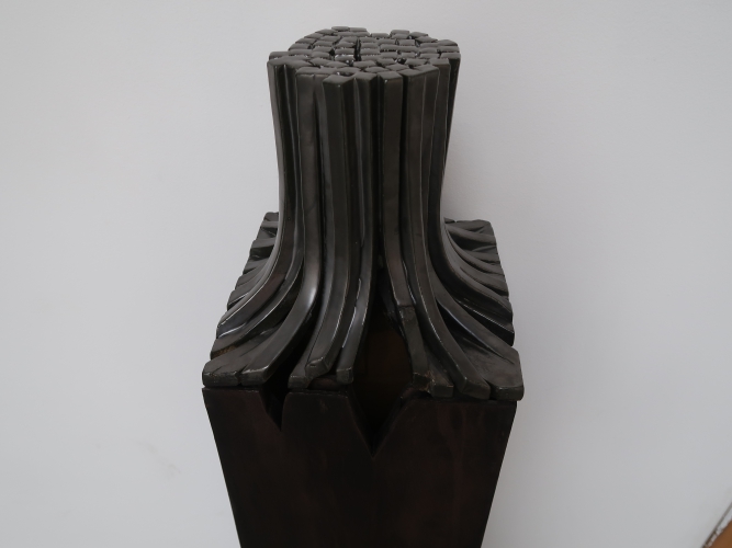 Czerpanie z codzienności objawia się choćby w rzeźbach nawiązujących do kształtów wiązek przewodów czy innych technicznych obiektów, których nie umiem nawet nazwać. To, co zwykle ukryte w ścianach i urządzeniach, niewidoczne, artysta nie tylko wyciąga na światło dzienne, ale i monumentalizuje. Nadaje temu rangę. Dostrzega w tym piękno.