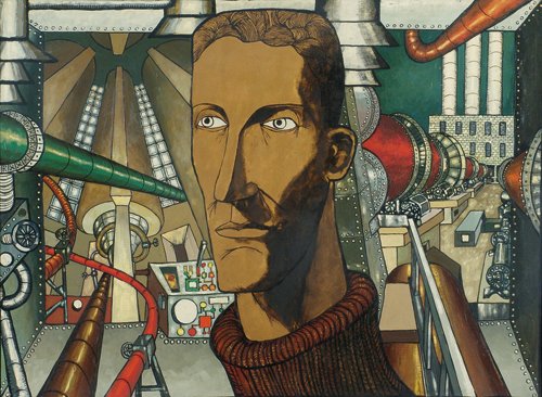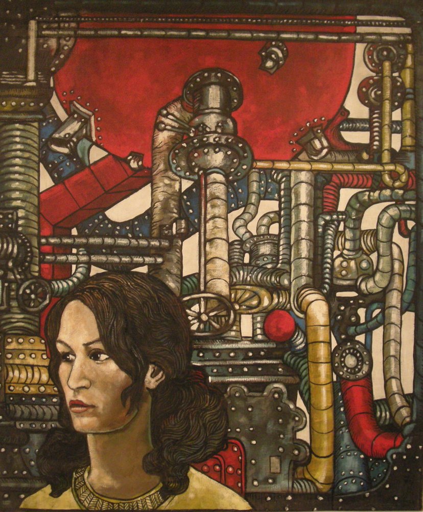 Benon Liberski fascynował się amerykańską popkulturą, ale nie naśladował stylistyki pop-artu, tylko stworzył własny, niepowtarzalny styl. Westerny, pin-up girls, komiks – to jego inspiracje. Czy mogło być tak, że krytykował ten lekki, niezobowiązujący styl życia, te powierzchowne rozrywki? Nie sądzę – w szarych, głodnych latach środkowego PRL to musiało się wydawać naprawdę atrakcyjne… Ale, żeby oddać sprawiedliwość – Liberskiego interesowały także rodzime tematy, jakże na czasie: dyspozytornie w wielkich zakładach pracy, rury i kominy, jednym słowem – kwitnący socjalistyczny przemysł. Coś jak w futuryzmie, tylko że jednak uwielbienie dla przemysłu jako motoru rozwoju nie w sensie uniwersalnym, ale bardziej swojskim: z rurami komponują się sztandary albo rozkwitnięte róże, które można kojarzyć z kwiatami rzucanymi przed trybuny podczas pierwszomajowych pochodów albo z bukietami wręczanymi partyjnym bonzom wizytującym zakłady pracy. A może te piękne kwiaty, jak portret kobiety na tle przemysłowych urządzeń, przełamują surowość, chłód, sprawiają, że przemysł staje się rzeczą ludzką, a nawet przyjazną...