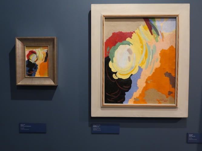 RECENZJA. Dowiadujemy się, że obrazy solarne Modzelewskiego, tworzone od 1946 roku, poprzedziły „powidoki” Władysława Strzemińskiego – obu współpracujących ze sobą twórców zainspirowały zjawiska optyczne powstające w oku pod wpływem światła słonecznego, ale to Modzelewski pierwszy odwzorował je na płótnie. Pisze Aleksandra Talaga-Nowacka.