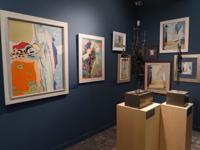 Ale twórca ten jest też autorem innych znakomitych siedzisk, które są zarazem przedmiotami codziennego użytku i dziełami sztuki (na wystawie znalazły się m.in. oryginalne fotele RM56 i RM57). Projektował jachty morskie z tworzywa – pracując nad nimi, myślał także o sobie, był bowiem pasjonatem żeglowania. O tym wszystkim przypomina prezentacja w Muzeum Miasta Łodzi, która wskazuje również na mniej znane, a ciekawe dzieła Modzelewskiego: obrazy malarskie, abstrakcyjne reliefy wykonane w technice własnej, abstrakcyjne metalowe rzeźby, projekty biżuterii, świecznika, ozdobnej kraty okiennej, dramatycznych form z bramy wejściowej do mauzoleum na Radogoszczu czy nietypowego witraża. Dwa panele awangardowego witraża Modzelewskiego z lat 70. uratowano niedawno od destrukcji z przeznaczonego do wyburzenia dawnego pawilonu „Handlowiec” w Poddębicach. Jeden z nich trafił do kolekcji MMŁ i można go zobaczyć w ramach wystawy, drugi jest jeszcze w konserwacji.
