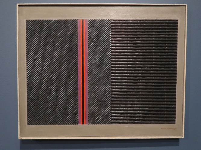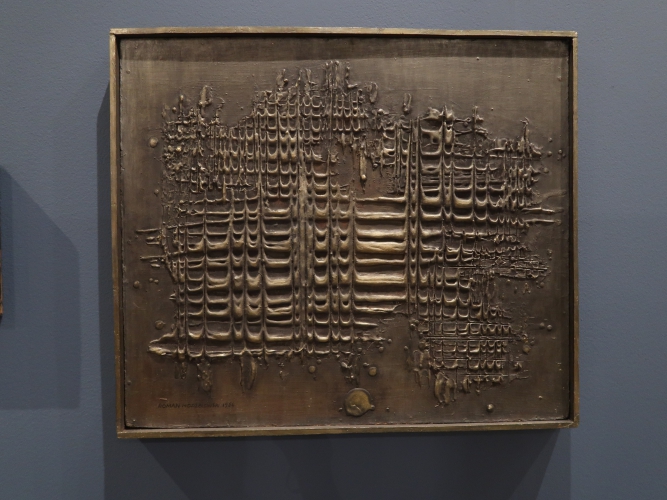 Ekspozycja dobrze pokazuje drogę, jaką artysta pokonał – od gwaszu z realistycznym widoczkiem z lat 30. czy olejnego autoportretu z 1939 r. do oszczędnego w formie, ale zarazem mającego przecież funkcję dekoracyjną, modernistycznego designu najwyższej jakości. A płótna, reliefy i rzeźby Modzelewskiego z kolekcji MMŁ prezentowane są po raz pierwszy. Dzięki wystawie dowiadujemy się, że obrazy solarne Modzelewskiego, tworzone od 1946 roku, poprzedziły „powidoki” Władysława Strzemińskiego – obu współpracujących ze sobą twórców zainspirowały zjawiska optyczne powstające w oku pod wpływem światła słonecznego, ale to Modzelewski pierwszy odwzorował je na płótnie.