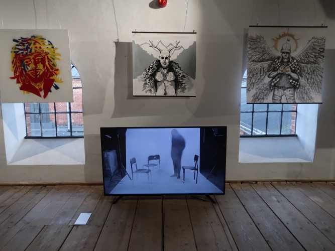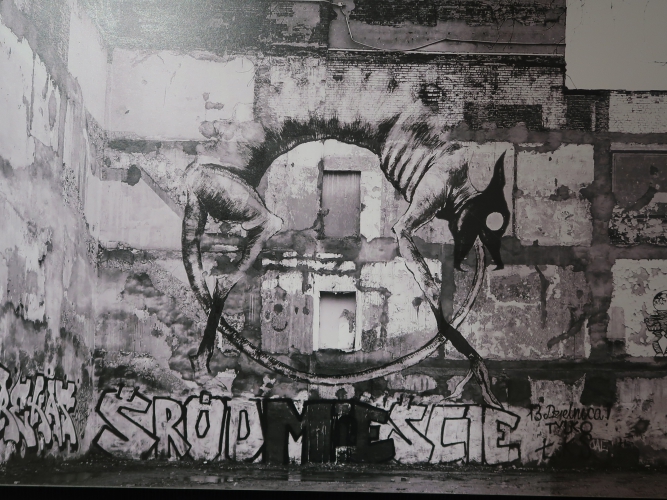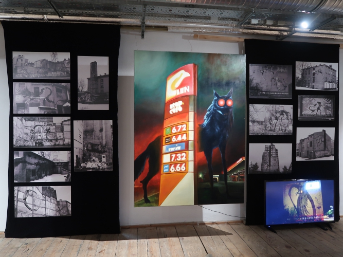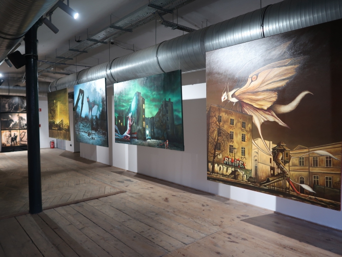 Sporą część tej przestrzeni zajmują prace Wojciecha Stachury z zasiedlającymi miasto zwierzętami-potworami w roli głównej. Jego duże obrazy (każdy w innej dominancie kolorystycznej) są kontrowersyjne, ale już co do drugiej części propozycji: czarno-białych ilustracji z naniesionymi komputerowo na łódzkie ściany sylwetami potworów nie mam wątpliwości – są naprawdę udane, chętnie zobaczyłabym te sylwety na prawdziwych ścianach.