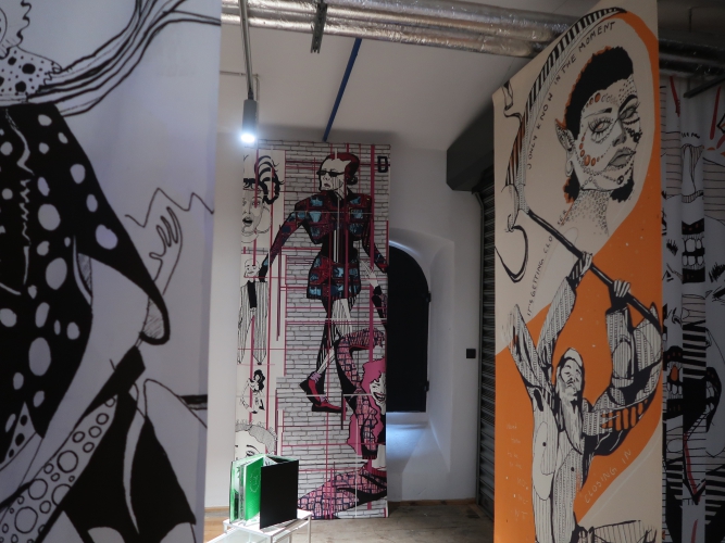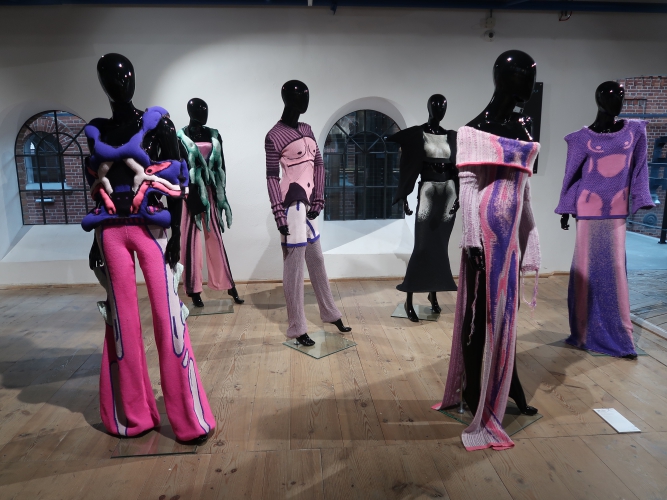 Kolekcja inspirowanych surrealizmem ubiorów Zuzanny Kordiukiewicz mogłaby znaleźć się piętro niżej, obok propozycji Karoliny Pieniążek – to podobny sposób myślenia o ubiorze, pojawiają się nawet zbliżone kształty. Ciemny zakątek z fluoryzującymi tkaninami Karoliny Kędzi to miejsce magiczne jak również fluoryzująca instalacja Marty Chrobak.