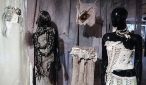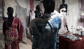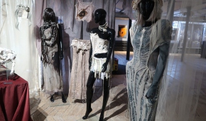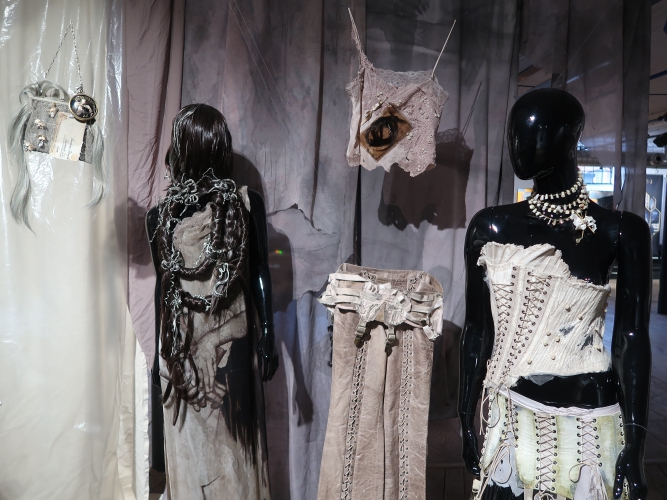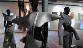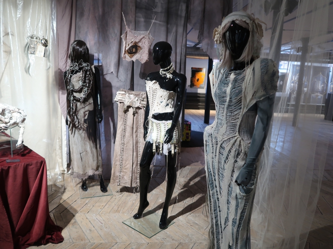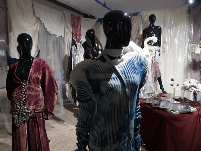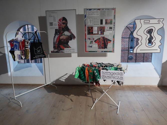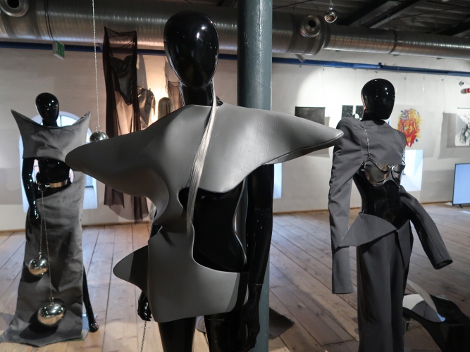 W pobliżu – jakby uzupełnienie rzeczywistości ze sztuki Stachury: kolekcja fascynujących ubiorów Karoliny Pieniążek „Universum 22” (za którą w 2024 r. otrzymała „Złotą Nitkę” podczas Łódź Young Fashion), wyglądających jak wdzianka dla zombie. Jest nawet zombi-łabędź.