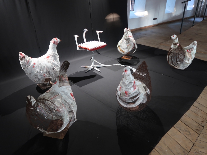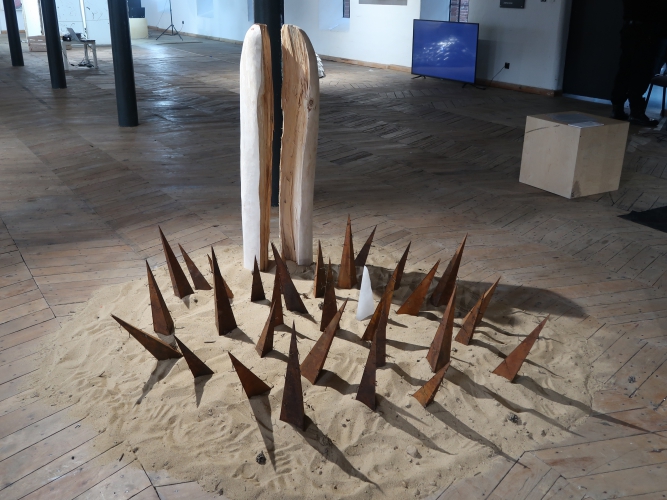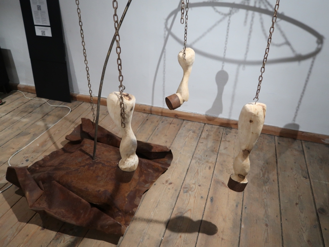 Wymowne są też równie proste rzeźby Bartosza Junaka z cyklu „Czy powinniśmy upozorować śmierć?” (po to, by „oszukać przeznaczenie” i ustrzec się końca świata?), przedstawiające pułapki, m.in. najeżone, „przeciwczołgowe” ostrosłupy, wystające z rozsypanego na podłodze piasku albo szubienicę z metalową pętlą.