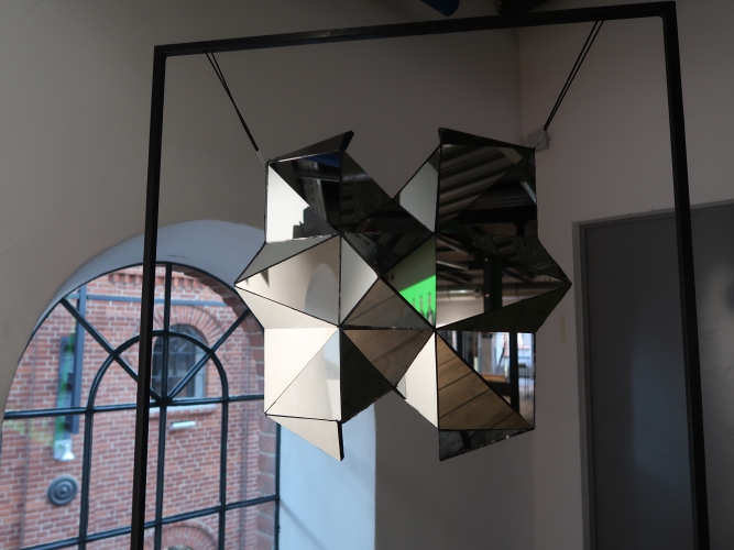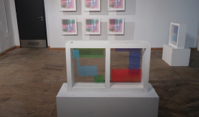 Z tymi surowymi, „brutalnymi” obiektami mocno kontrastuje subtelny dyplom Estery Lipman, która, pracując z rastrem, uzyskuje różne efekty wizualne, m.in. w pracach 3D: w białej ramie umieszcza kilka warstw przezroczystej pleksi, na których naniosła geometryczne figury w jednolitych kolorach – gdy spojrzeć z przodu lub tyłu, barwy w pewnych miejscach nakładają się na siebie i mieszają.