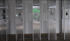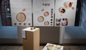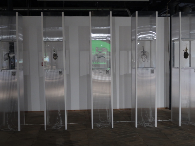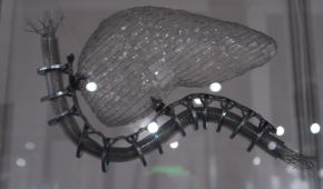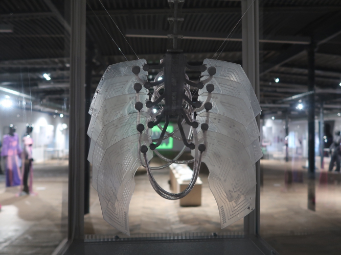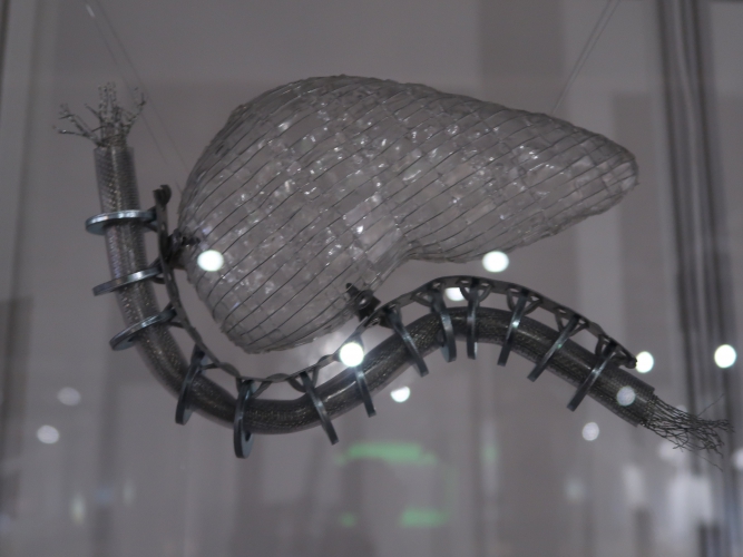 Czas na trzeci dyplom spośród tych, które uważam za najciekawsze. Już sam pomysł Klaudii Stańko na ekspozycję prac jest niezwykły: gabloty w formie wysokich, pionowych, przezroczystych prostopadłościanów z bocznej perspektywy wizualnie tworzą jedną całość – transparentną ścianę. Pośrodku kolumn „unoszą się” rzeźbiarsko-biżuteryjne obiekty w kształcie ludzkich organów wewnętrznych. Artystka zwraca w ten sposób uwagę na etyczny kontekst transhumanizmu – przypomnijmy: ruchu postulującego możliwość i potrzebę wykorzystania nauki i techniki do przezwyciężenia ograniczeń człowieka i poprawy jego kondycji.