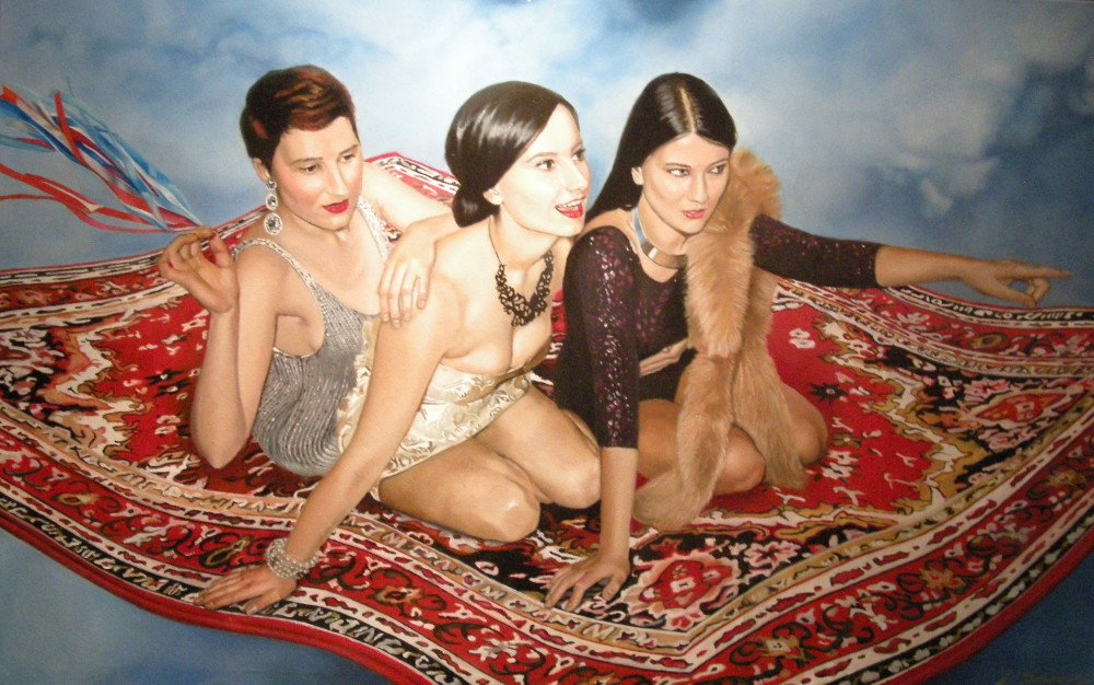 W hiperrealistycznych obrazach Kamili Stępniak (rocznik 1983) baśniowy świat łączy się z tym zwyczajnym. Mocne, żywe kolory z daleka ściągają wzrok. Pani z tygrysem u boku, trzy panie na latającym dywanie… Artystka wykonała też interesujący, designerski „waflowy” fotel.