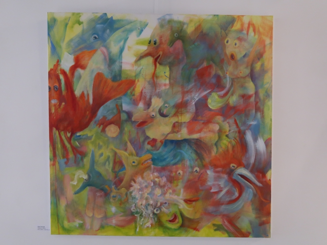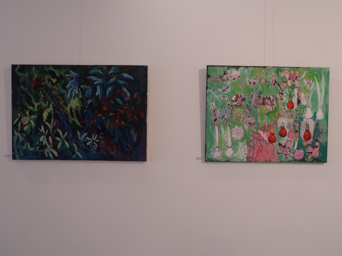 Martyna Kowalczyk w „Amarylisie” w bajkowej poetyce, w żywych, optymistycznych kolorach pokazuje coś, co w pewien sposób niepokoi: pośród wzrastających i już rozkwitłych amarylisów pojawia się postać kobiety, ale nie w całości, lecz jakby w rozpadzie: ciało jest pokryte siecią splątanych żyłek, a twarz widoczna tylko częściowo, ujęta w kształt kwiatów. Niepokoi także obraz Anny Pacholik, z pozoru również bajkowy: kolorowy i radosny. Ale wypełniający całą powierzchnię płótna tłum tytułowych weselników tworzą tu dziwne, fantastyczne, ptako- i zwierzętopodobne stwory, po których nie wiadomo, czego się spodziewać. Jest też postać bez głowy i sama – ale nie pasująca do tej postaci – głowa…